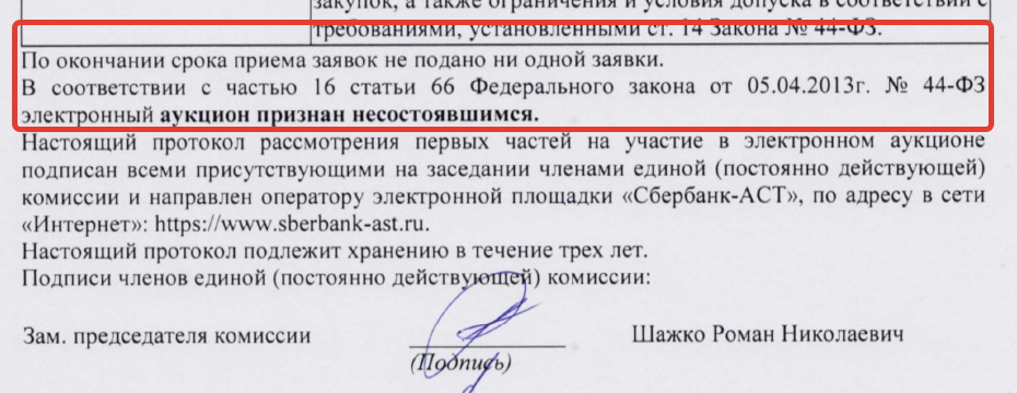За него чиновники готовы были потратить из бюджета до 1 млн 295 тыс рублей. Однако, как и полтора месяца назад, при проведении аналогичного электронного аукциона, не было подано ни одной заявки, и аукцион был признан несостоявшимся. Информация об этом появилась на сайте госзакупок 5 июля.