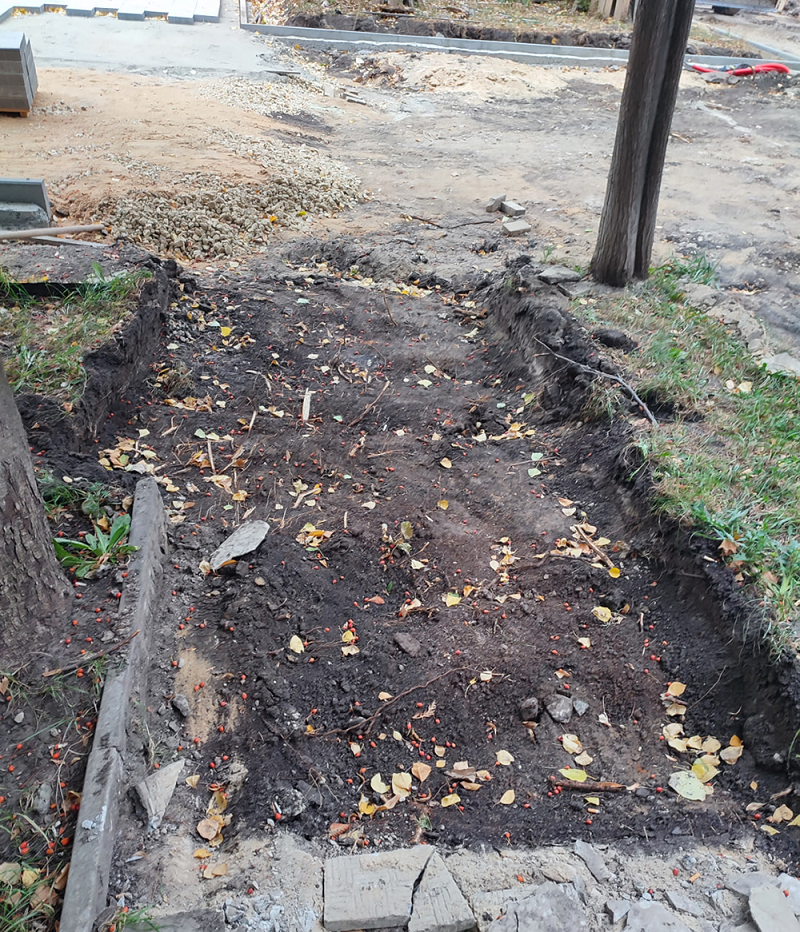 Здесь тоже повредили корни, но большую часть уже убрали.