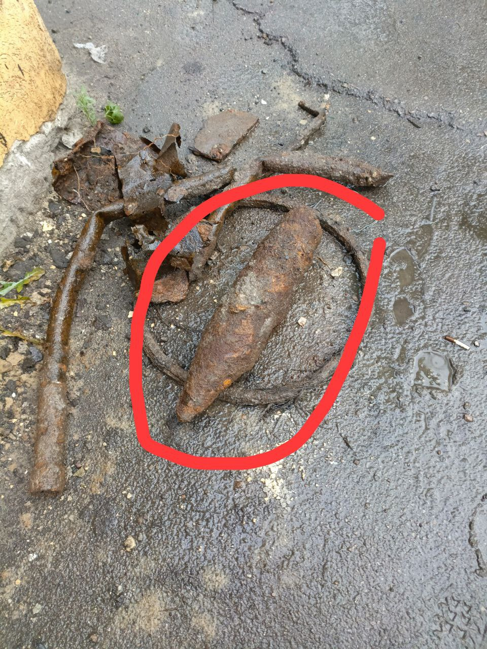 В редакцию «Блокнот Воронеж» обратился житель города, который рассказал о тревожной находке во дворе дома по улице Краснознамённая, 131. Мужчина прислал фотографии, на которых запечатлён артиллерийский снаряд времён Великой Отечественной войны. По его словам, находку сделали во время земляных работ.
