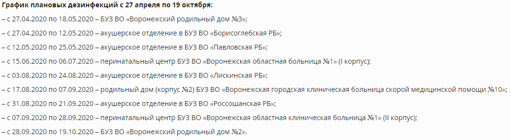 Роддомы временно закроют в Воронеже