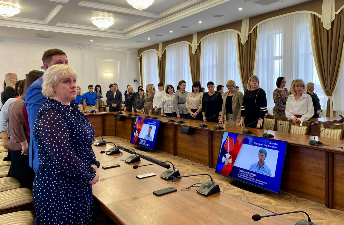 В большом зале администрации Борисоглебского городского округа состоялась церемония вручения Ордена Мужества родственникам военнослужащего Дмитрия Тарасова. Мужчина принимал участие в боевых действиях и погиб, неся службу, в августе 2023 года. Орден был присвоен ему указом президента за проявленное мужество и отвагу при выполнении воинского долга.
