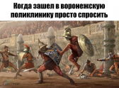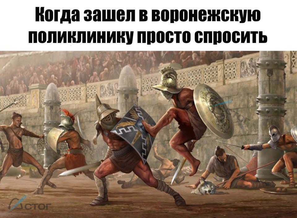 Так, в интернете решили сравнить посещение поликлиники с целью "просто спросить" с битвой гладиаторов на арене. Очевидно, что авторы имели ввиду огромные очереди и постоянные ссоры между пациентами, которым приходится чуть ли не сражаться за свое место с соседями.