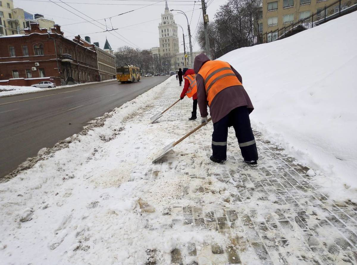 Техника выехала на улицы Воронежа сразу же после наступления снегопада. Первыми выпустили пескоразбрызгиватели и тракторы со щетками. Это было необходимо во избежание накатов на дорогах.