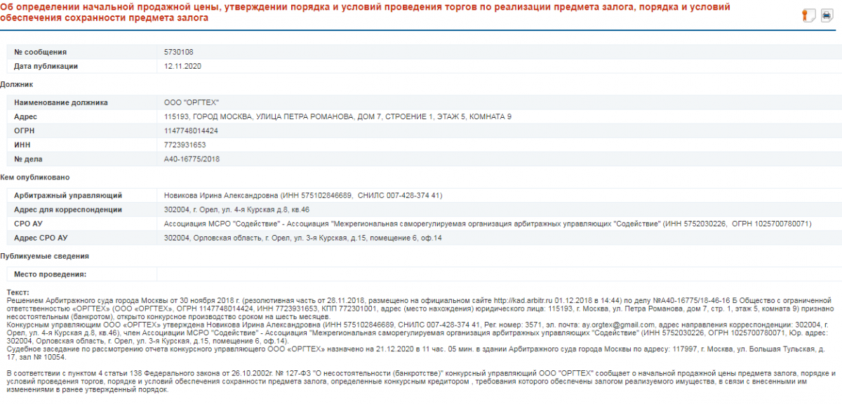 Предыдущим владельцем бизнес-центра была компания «Оргтех», обанкротившаяся еще в конце 2018 года.