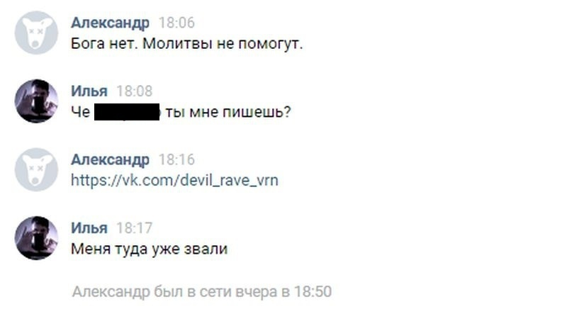 С виду – это безобидная молодежная вечеринка. Однако ее организаторы начали приглашать туда воронежцев используя странные методы. В личные сообщения в социальных сетях людям стали приходить сообщения, которые могли бы оскорбить их религиозные чувства.
