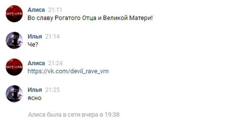- Во славу Рогатого отца и Великой матери, - пригласила на вечеринку журналиста «Блокнот Воронеж» некая Алиса Новикова, вероятно, так обозначая древние сатанинские символы.
