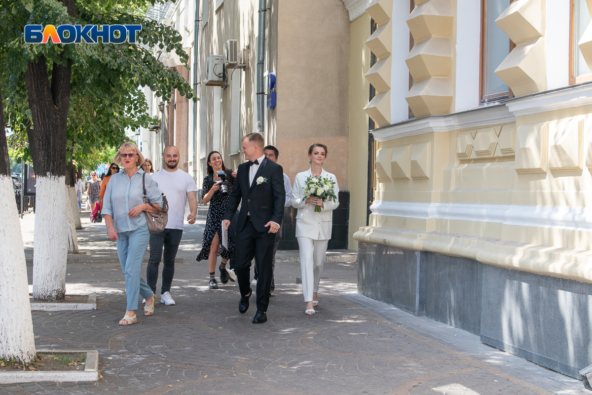 Но большинство жителей города (37 пар влюбленных) узаконили свои отношения в красивом Дворце бракосочетания на площади Ленина. За счастливыми молодоженами, выходящими после церемонии, наблюдал фотограф «Блокнот Воронеж».