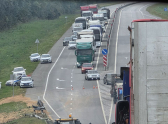 Из-за этой аварии в обе стороны автомагистрали стала собираться пробка из автомобилей.