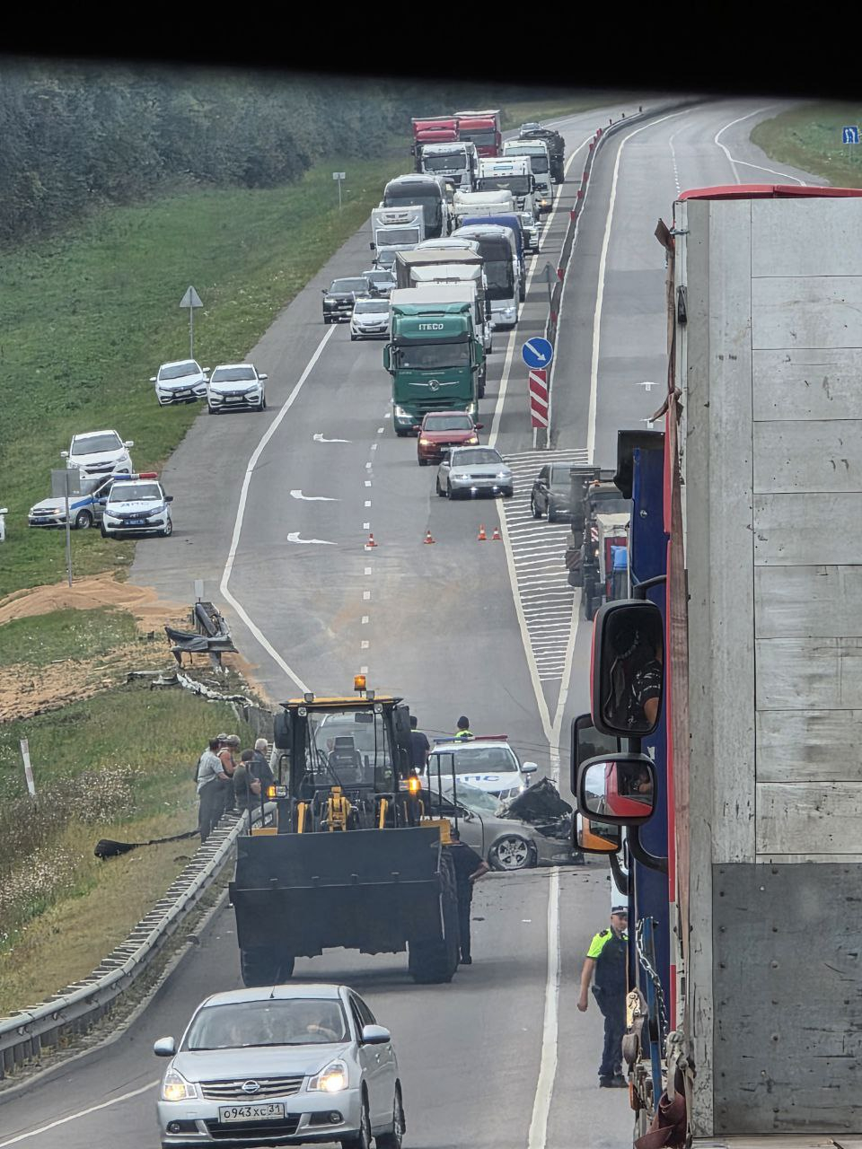 Это ДТП, как отметил читатель, заблокировало половину дороги на автомагистрали. Из-за этого на Курской трассе стал собираться затор в обе стороны.