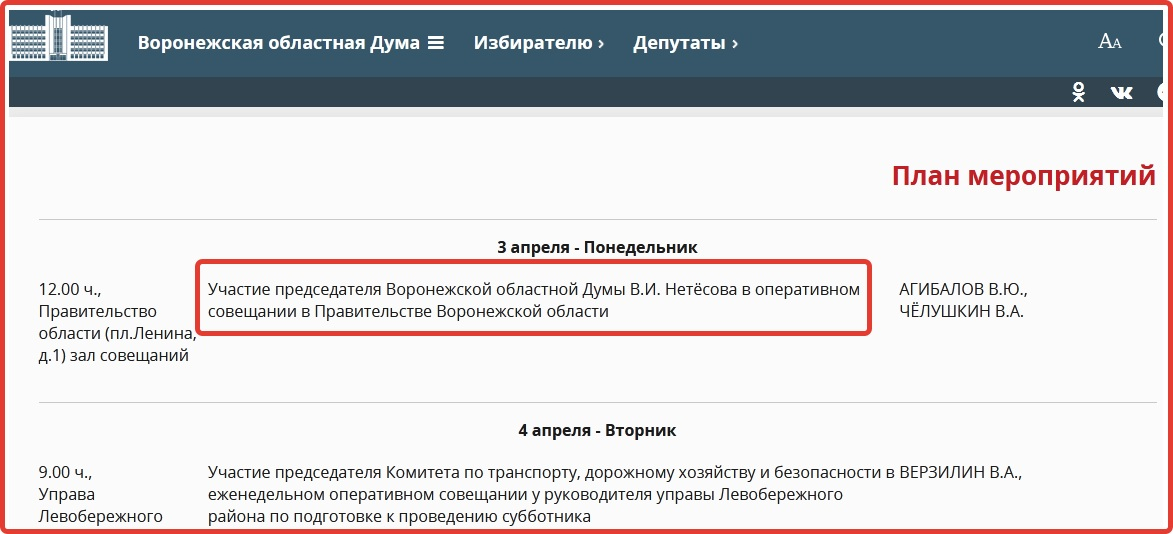 Председатель Воронежской облдумы Владимир Нетесов, вероятно, просто прогулял важное совещание в областном правительстве - традиционную по понедельникам «губернаторскую планерку», во время которой с руководством ряда региональных и федеральных структур подводятся итоги прошедшей недели и говорится о планах на будущую.