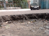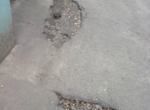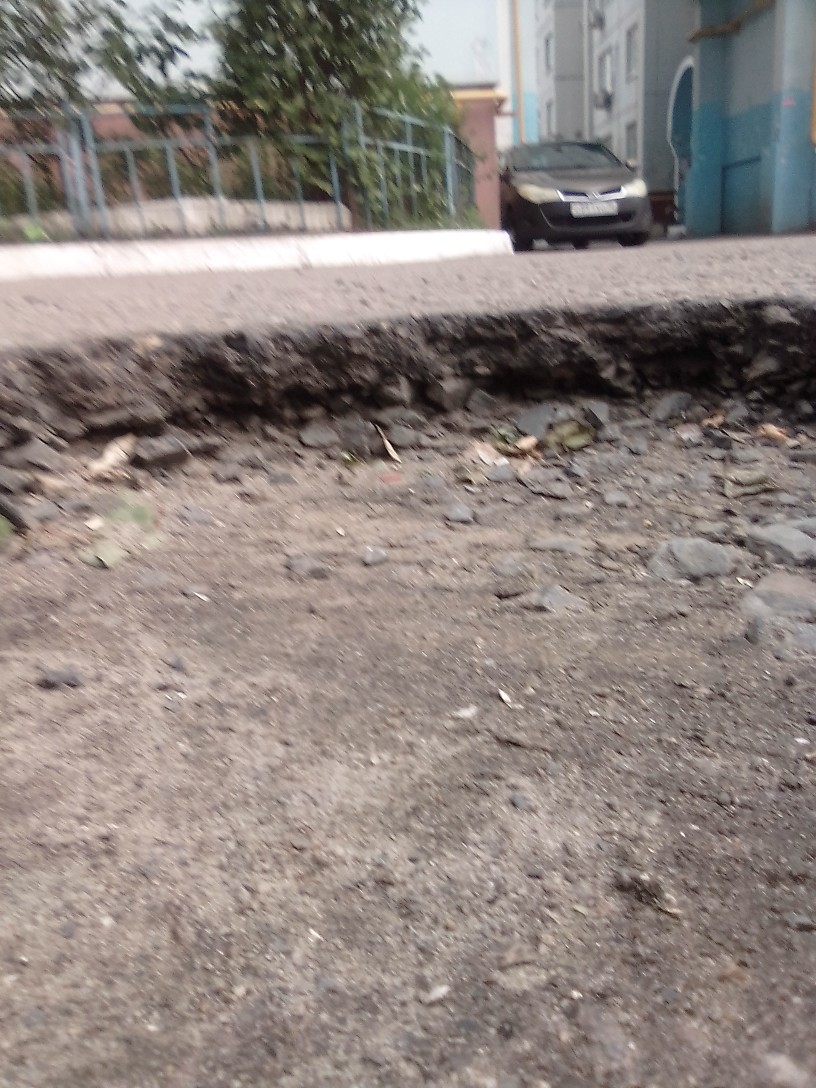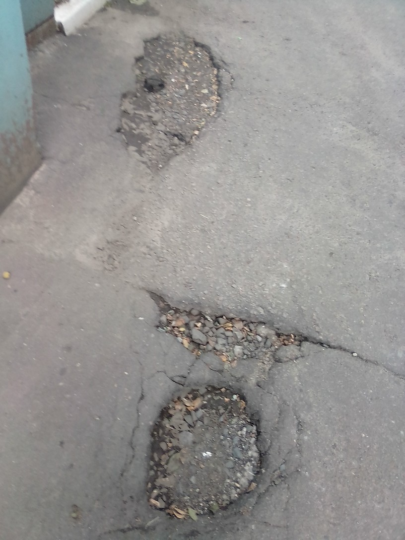 На самом же деле «богатырского» оказалось не так уж много. Местные жители продемонстрировали состояние асфальта в районе дома №34. На опубликованных фотографиях видно, что во многих местах образовались довольно глубокие ямы. Асфальтовое покрытие разрушилось, обнажив внутренние слои. Повсюду трещины и провалы.