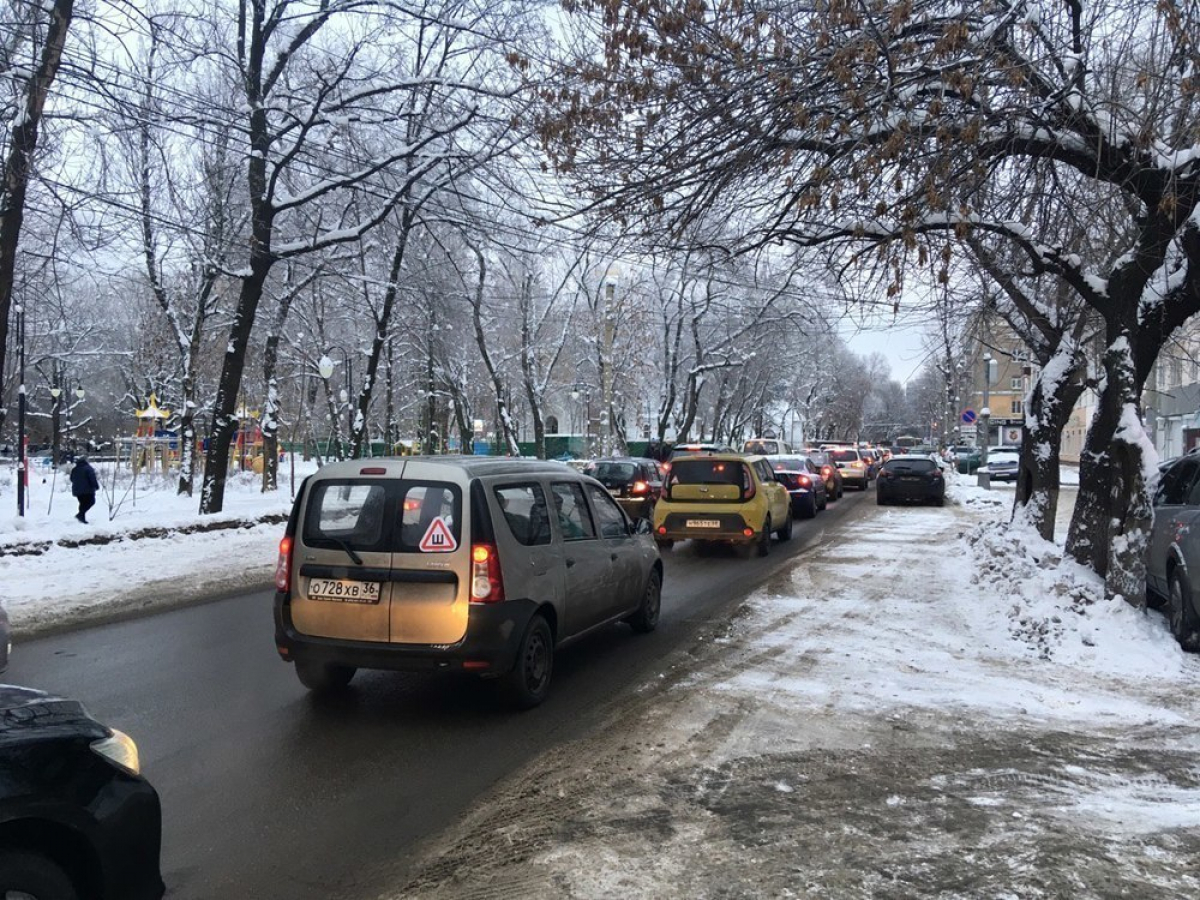 Сломавшийся автобус парализовал движение на узкой улице в Воронеже
