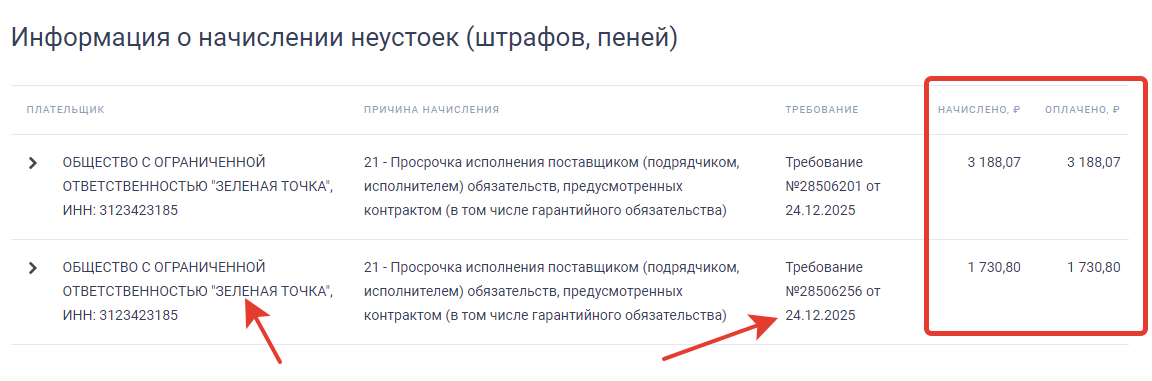 скриншот сайта госзакупок, карточка исполнения контракта