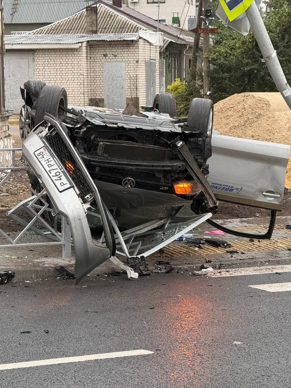 Снес столб и опрокинулся: жесткое ДТП произошло на недавно открытой улице в Воронеже