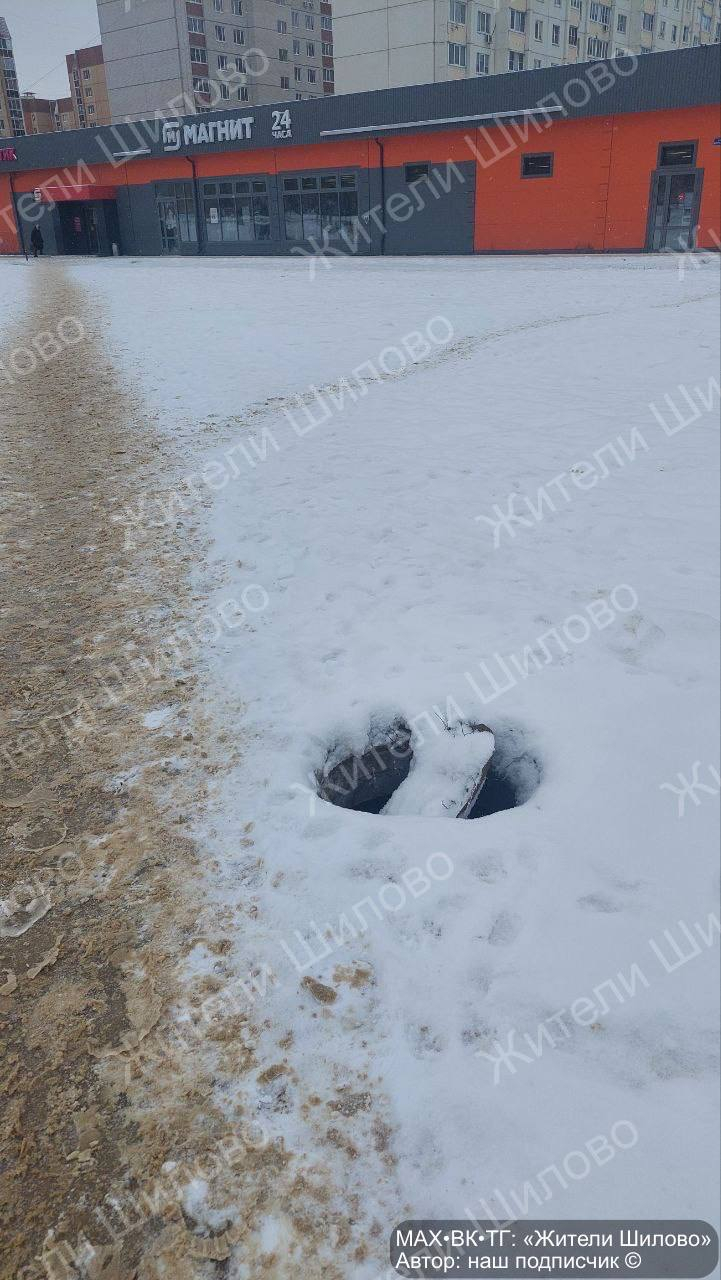 В социальных сетях она опубликовала снимок открытого люка, который практически не видно из-за свежевыпавшего снега. Это фото сделано в районе гипермаркета «Магнит» на улице Курчатова.