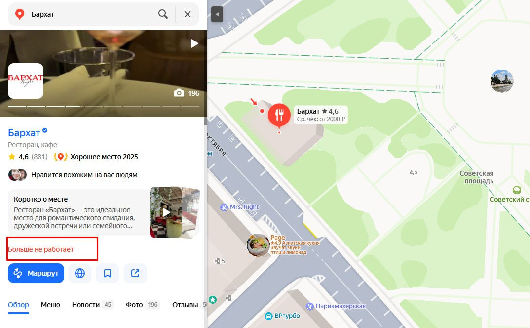 Напомним, несколько дней назад «Бархат» закрылся неожиданным образом. Все корпоративы и другие мероприятия были отменены. Сайт ресторана работал, но телефон был недоступен.