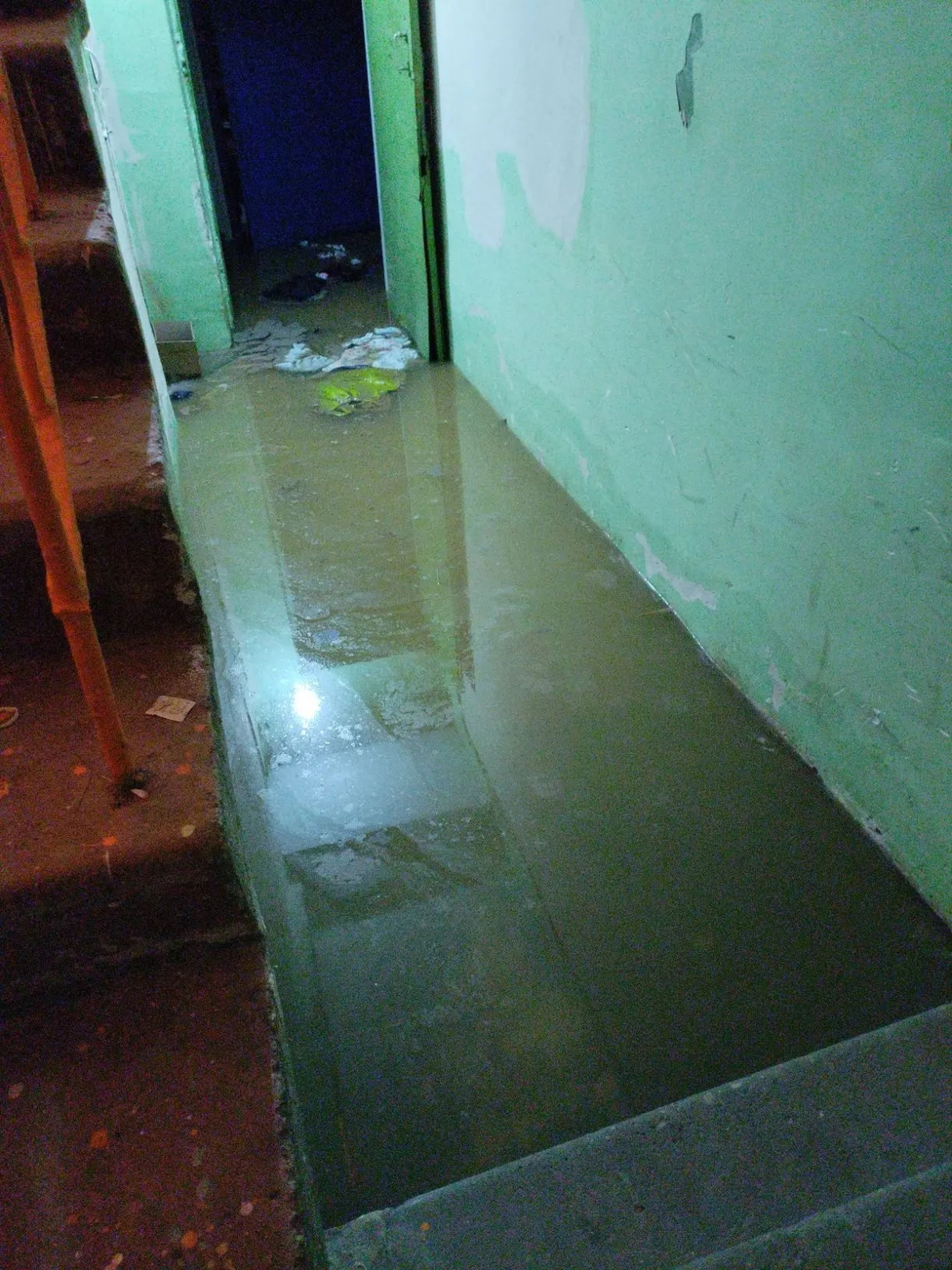 Руководитель уточняет, что из-за потопа полностью отсутствует свет: электрики ТСЖ сообщили, что «из-за затопления не проходит "фаза на подстанцию"». Чинить проводку специалисты отказались, так как пройти к месту аварии невозможно - кабель буквально лежит в нечистотах.