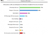 Далее мессенджеры распределились так: VK Messenger (19%), Viber (4%), Hangouts (1%), iMesseage (0,5%), Snapchat (0,5%). Другими приложениями пользуются 5% респондентов. Не пользуются никакими сервисами 11% местных жителей. Затруднились с ответом 3% опрошенных.