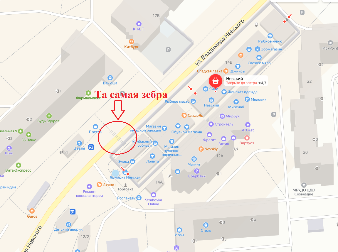 Исходя из кадров, трудно понять, переходил человек по зебре или нет, но она во всяком случае находится очень близко от того места, где в итоге затормозил автомобиль.
