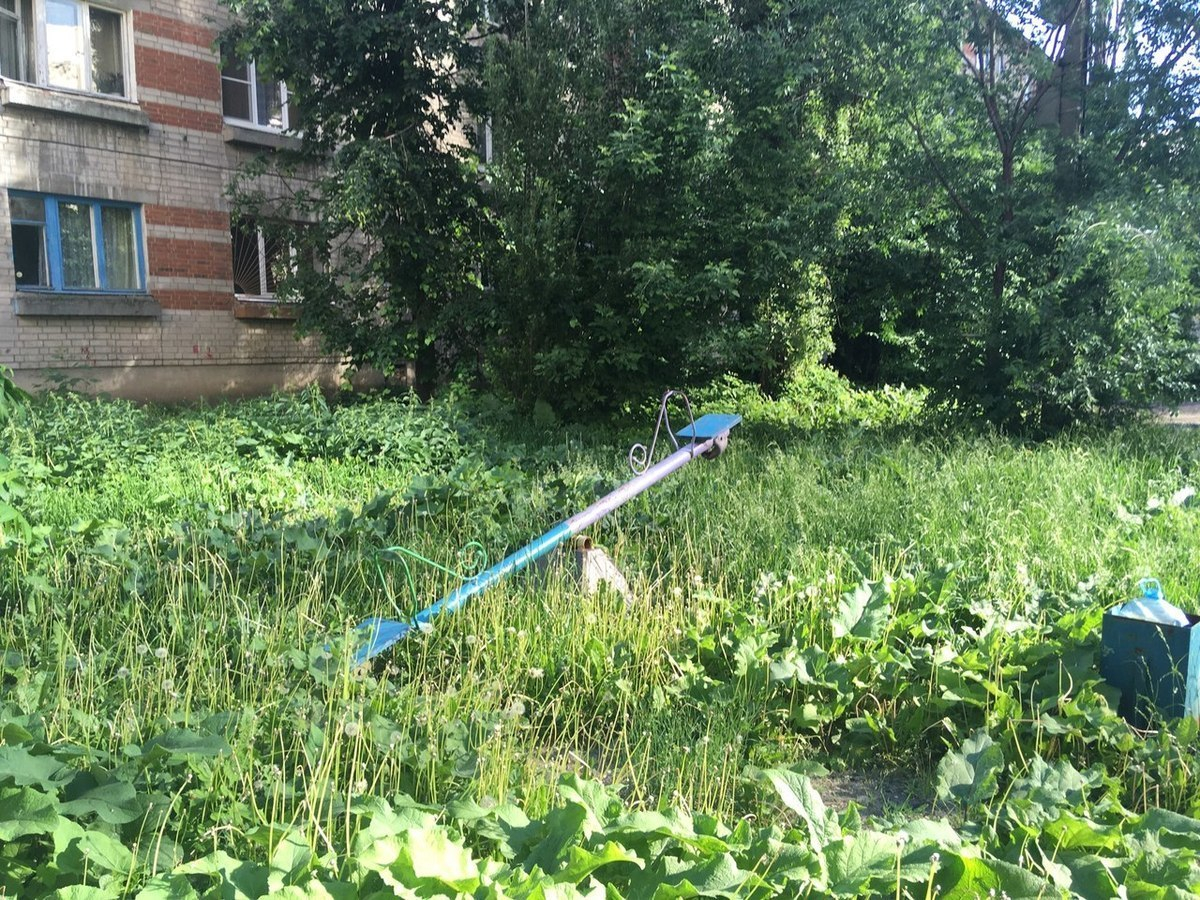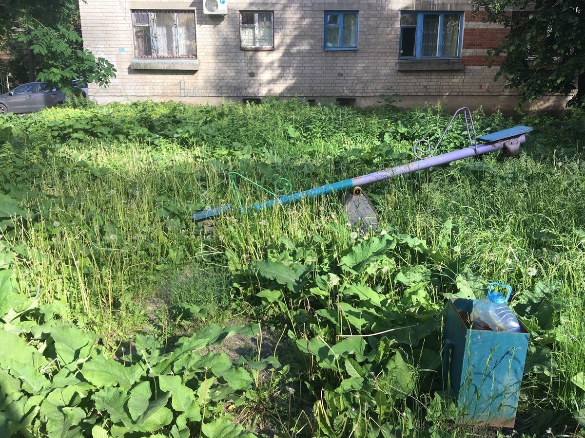 На фото, видно, что заросшая сорной травой площадка действительно мешает отдыхать детишкам, скорее всего именно по этой причине на кадрах не видно было ни одного ребенка.