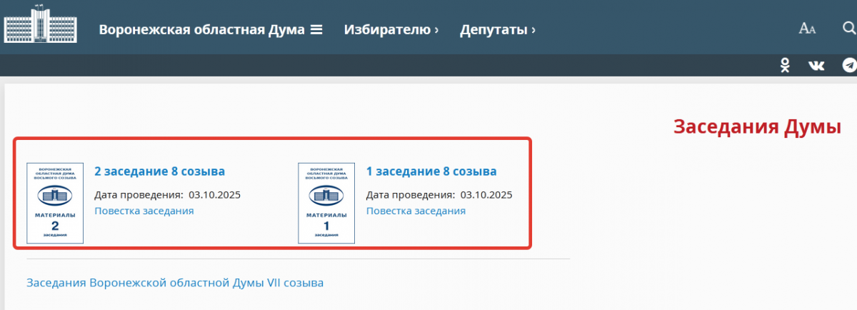 Сразу два заседания Воронежской областной Думы должны состояться в пятницу