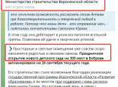 скриншот из ТГ канала воронежского Минстроя
