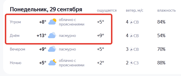 скриншот сайта "Яндекс. Погода", в городе Бобров в начале недели ожидается уже прохладная погода, в неотапливаемом здании будет холодно, и детям, и персоналу