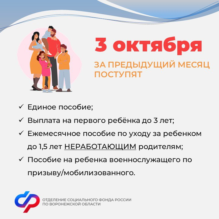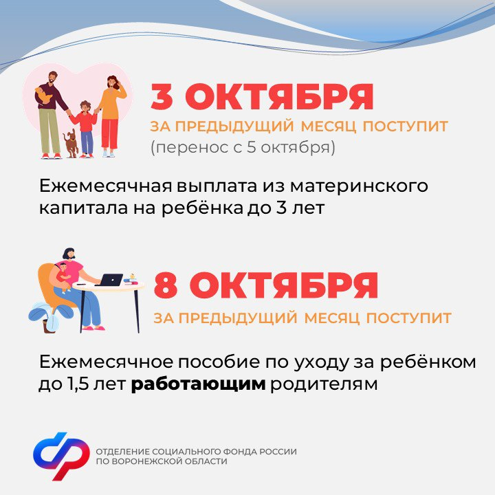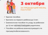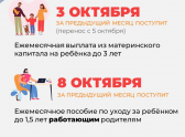 – 3 октября поступит выплата из средств материнского капитала на детей до 3 лет.