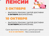 – Пенсии с датой доставки 5 числа будут зачислены 3 октября, с датой доставки 12 числа — 10 октября.