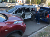 Затем отечественную машину отбросило на припаркованные иномарки: Nissan Juke, Mazda и Renault Logan.