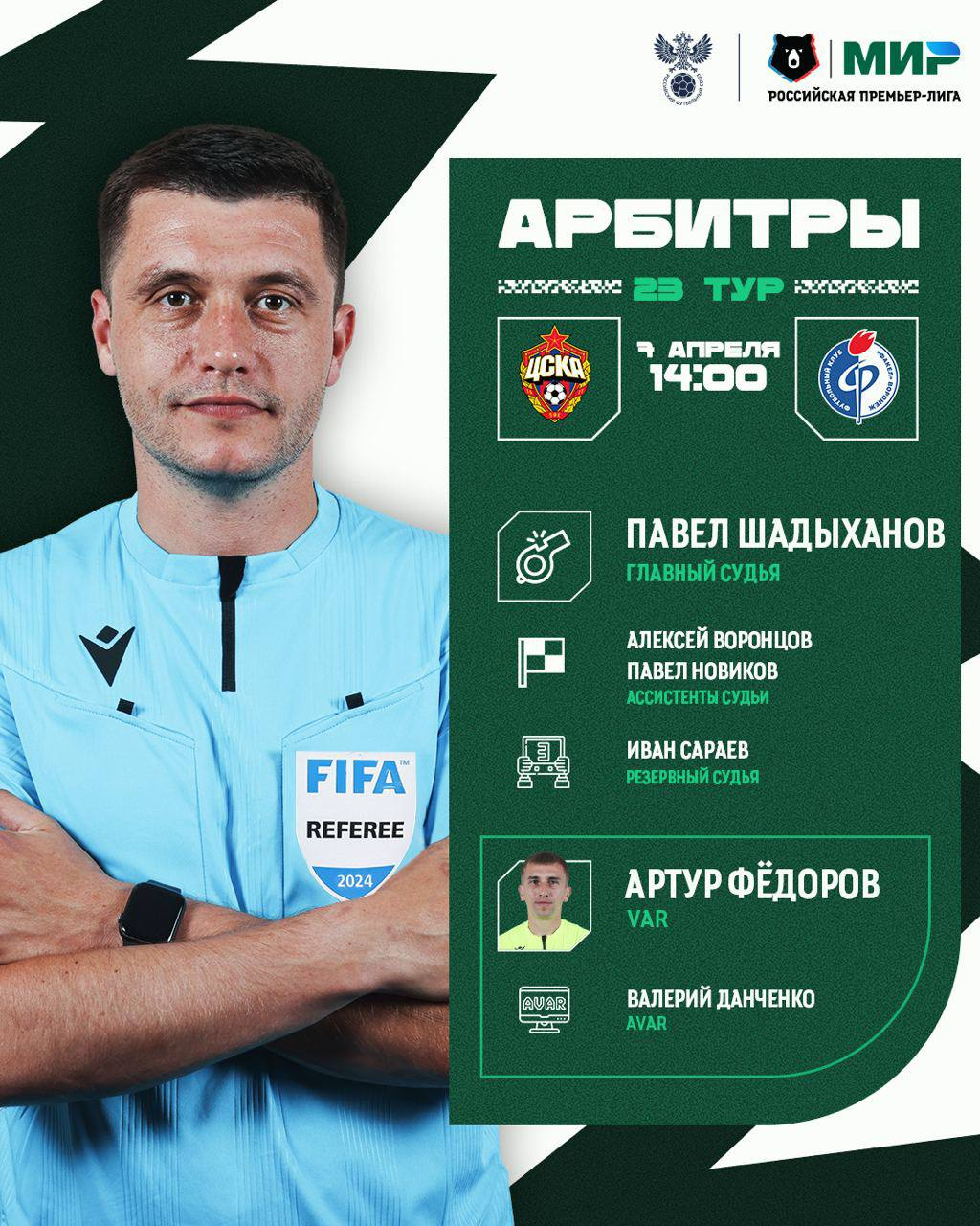 За VAR будет отвечать Артур Фёдоров, поможет ему Валерий Данченко.