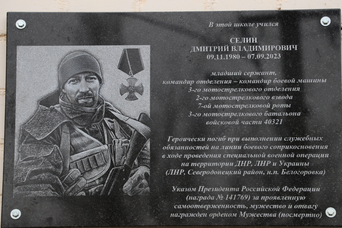 16 февраля в Острогожске Воронежской области на стене школы №4 открыли памятную доску, посвященную Дмитрию Селину. Наш земляк умер в зоне СВО 7 сентября 2023 года.