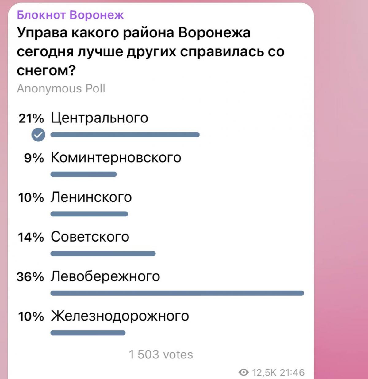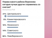 Чтобы знать наверняка, редакция "Блокнота" решила сделать опрос среди воронежцев, чтобы выяснить, управа какого района лучше всех справилась с уборкой снега.