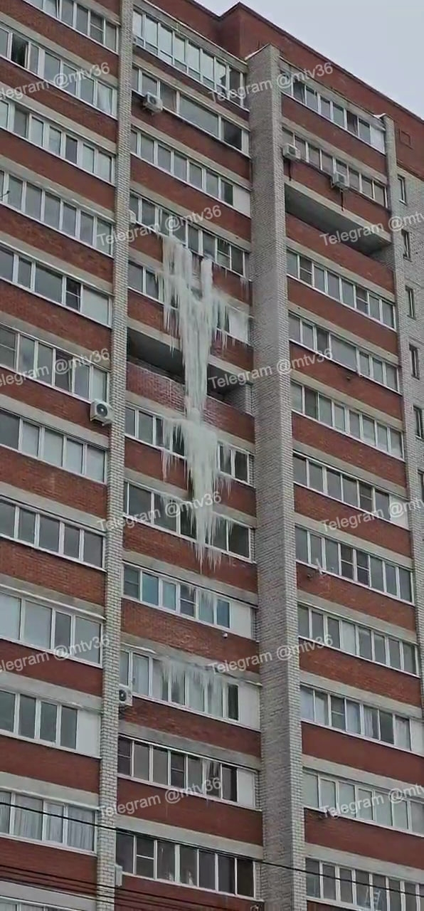 На улице Летчика Колесниченко, 44а, в столице Черноземья произошла настоящая коммунальная беда. По этому адресу располагается шестнадцатиэтажный кирпичный дом, построенный в 2008 году. Издание «Мой и твой Воронеж» опубликовало фото, как с верхних этажей строения начал свисать целый замерзший «водопад». Будто бы кто-то намеренно лил воду, чтобы она затем превратилась в сосульки. При этом размер ледяной глыбы очень внушительный. При падении она может уничтожить все живое.