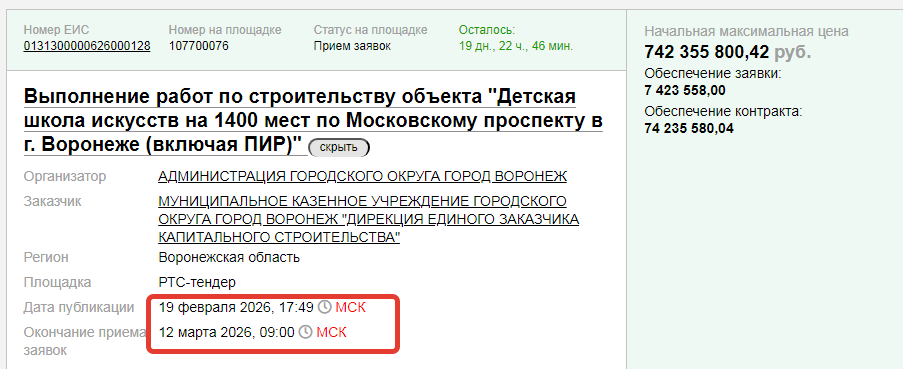 О новом социальном объекте сообщил мэр Сергей Петрин, а за час до этого на сайте госзакупок были объявлены торги по поиску подрядчика для строительства этого социального объекта. Он не совсем обычный: подобных Детских школ искусств в Воронеже не строили, как отметил глава города, «несколько десятков лет». То есть, вероятно, со времен советской власти. Очевидно, что для такого объекта "потребуются" не только сотни детей, но и десятки педагогов. Есть ли они в резерве? Либо преподавателей будут переводить из других учреждений. Очевидно, что кадровый вопрос здесь тоже немаловажный.