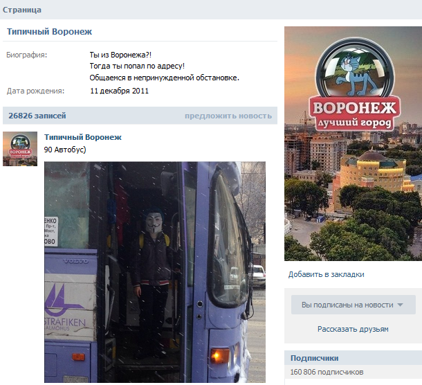 Самую популярную воронежскую группу в интернете украли 3 января.