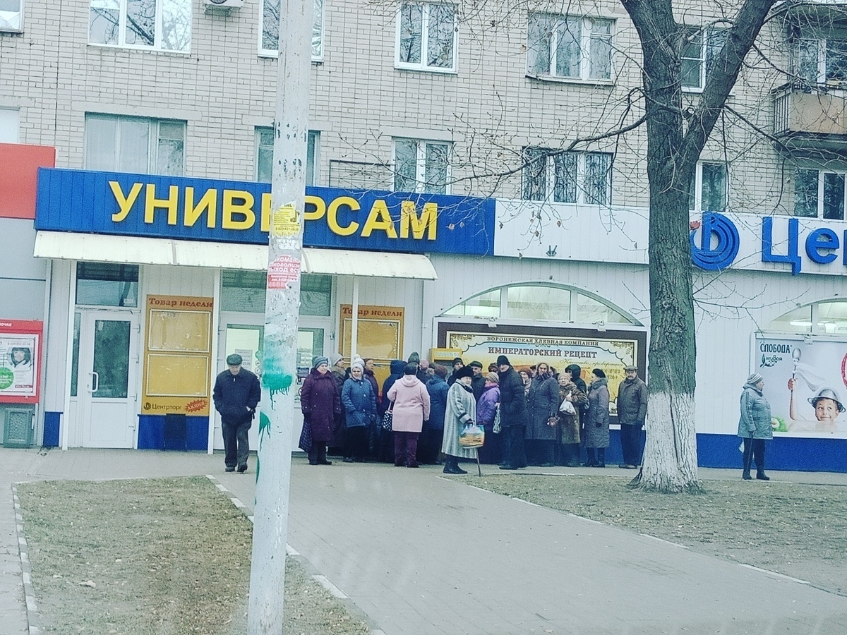 Воронежцы сообщили о скоплениях пожилых людей у местных супермаркетов, которые можно заметить в определенные дни. Десятки пенсионеров выстраиваются в очереди, не обращая внимания на мороз. В толпах бывает весьма спокойно, но случаются и ссоры. Как рассказывают горожане, нередко бывают и драки.