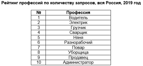 Также местных жителей привлекала вакансия администратора, далее в топ-5 следуют вакансии продавцов, грузчиков и электриков. В рейтинге по стране к перечисленным специальностям добавляется еще сварщик, няня, разнорабочий, повар и уборщица.