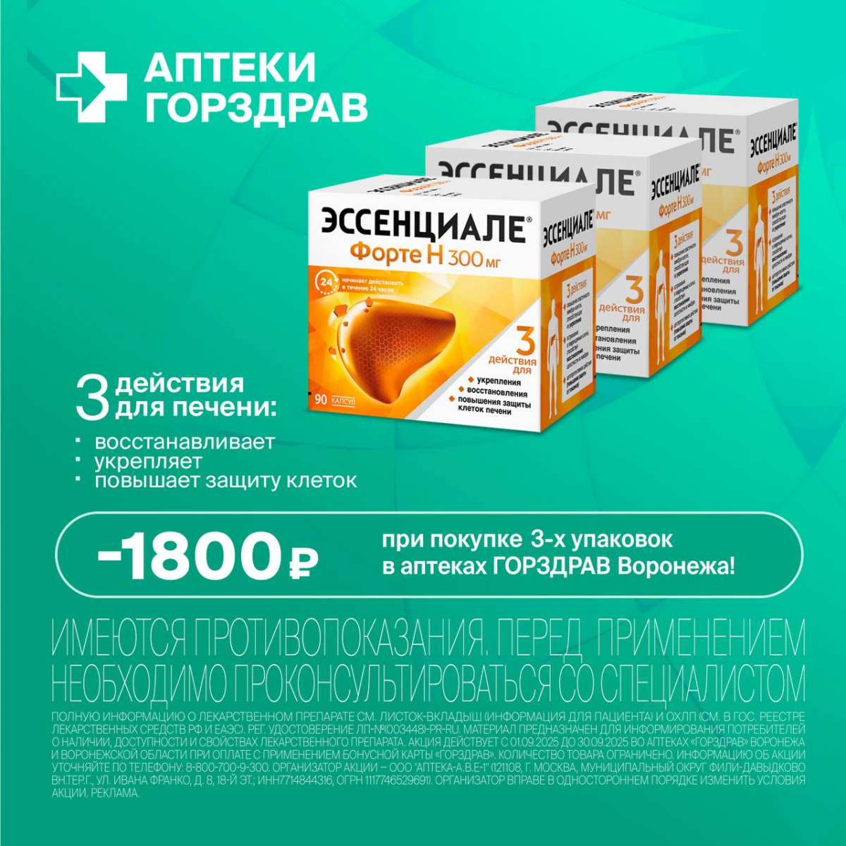 Заботьтесь о своем здоровье с гепатопротектором «Эссенциале® форте Н», который восстанавливает и защищает клетки печени.