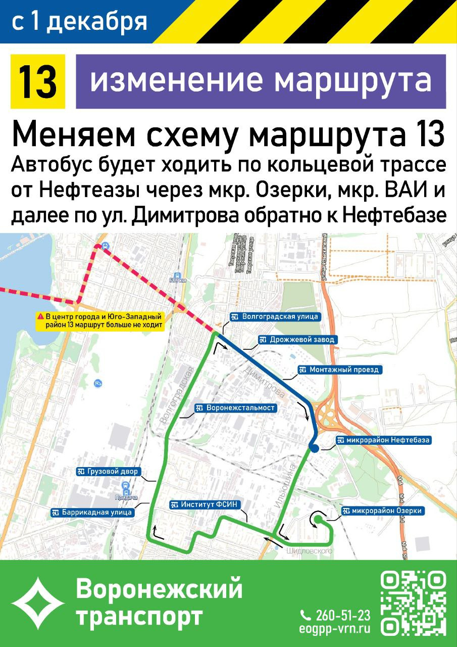 В Воронеже с 1 декабря будет скорректирована схема движения двух маршрутов общественного транспорта – №13 и №63. Инициативу объясняют тем, что это улучшит транспортное обслуживание Левобережья. Некоторые изменения были внесены напрямую из-за просьбы горожан. Так, автобус №13 теперь вообще не будет заезжать на правый берег, зато будет включать в себя больше левобережных «объектов социальной инфраструктуры». Выглядеть, в общем, он теперь будет так: