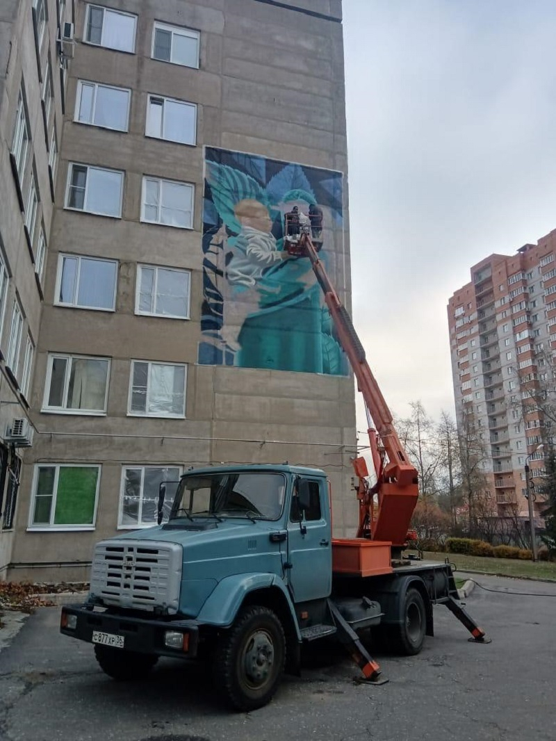 На фасаде Воронежской областной детской больницы №1, которая расположена на улице Ломоносова, появилось красочное граффити. Огромный рисунок посвятили врачам, ежедневно борющимся с коронавирусной инфекцией. На нем изображен доктор в защитном костюме с младенцем на руках.