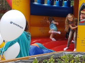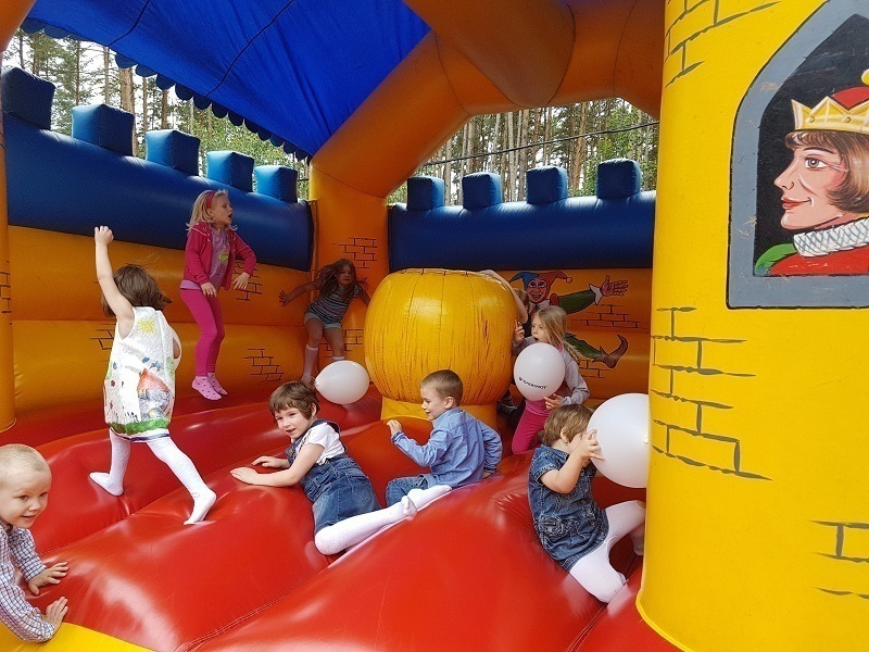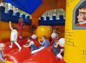 Дети с удовольствием выполняли задания под музыку из любимых мультфильмов, танцевали и веселились. Особый интерес у ребятни вызвал батут – малыши скакали на нем без устали.