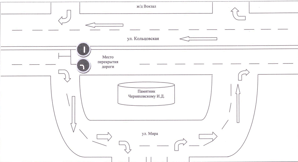 Объехать данный участок будет возможно по улицам Кольцовской, Феоктистова, Фридриха Энгельса, Мира и участку проезжей части площади Черняховского, примыкающего к улице Мира. Об этом сообщили в пресс-службе городской администрации.