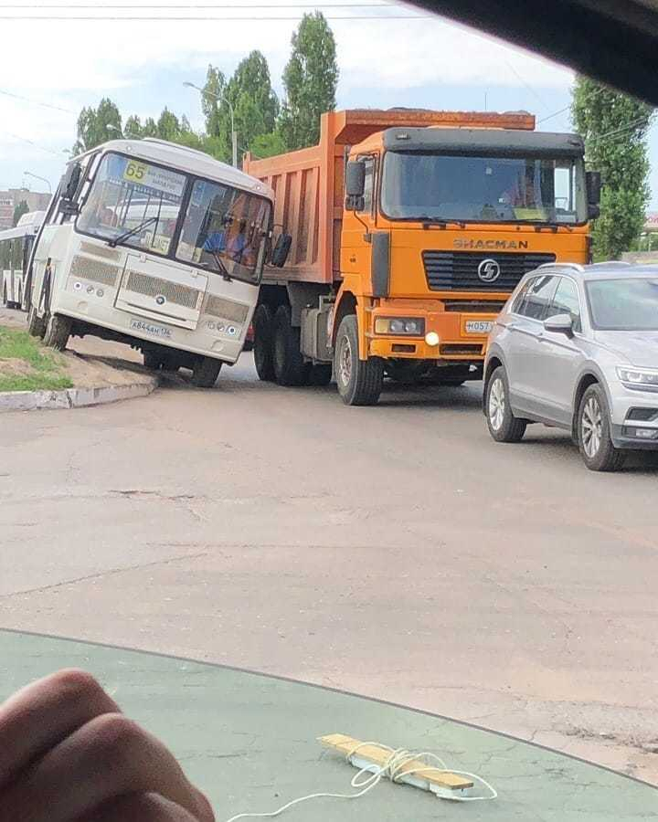Вблизи остановки «Грузовой двор» в микрорайоне ВАИ водителя пассажирского автобуса №65 застукали за нарушением. Мужчина, не желая толкаться в заторе, съехал с проезжей части прямо на обочину, при этом маневре половина «пазика» оказалась приподнята.
