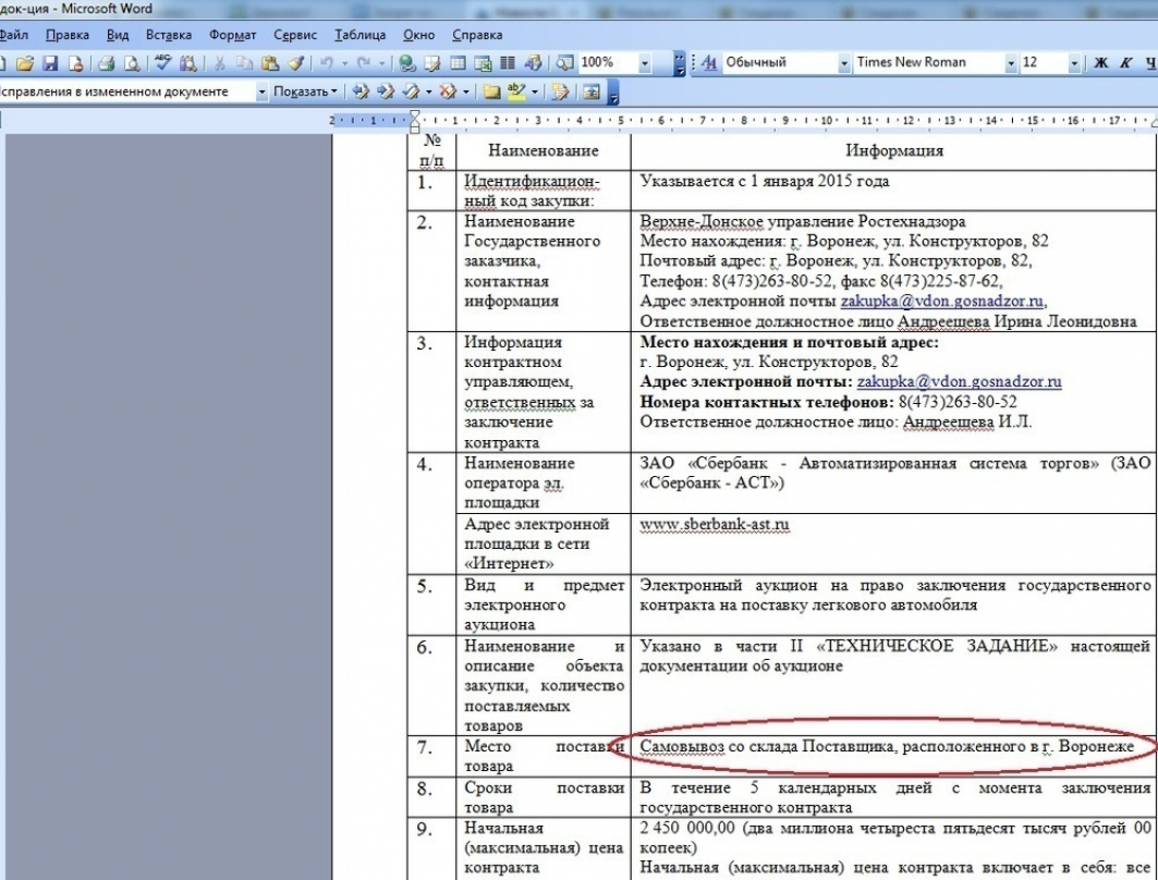 Интересная деталь: место поставки машины – самовывоз со склада поставщика, расположенного в Воронеже. Не ущемляет ли это права остальных? "За бортом" могут оказаться компании из других регионов.