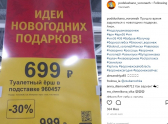 С приближением Нового года сетевые магазины устраивают различные акции. Один из супермаркетов решил помочь воронежцам выбрать подарок на праздники и предложил приобрести туалетный ершик. Владельцы магазина уценили товар на целых 300 рублей и подписали лаконичной фразой – «Идеи новогодних подарков».