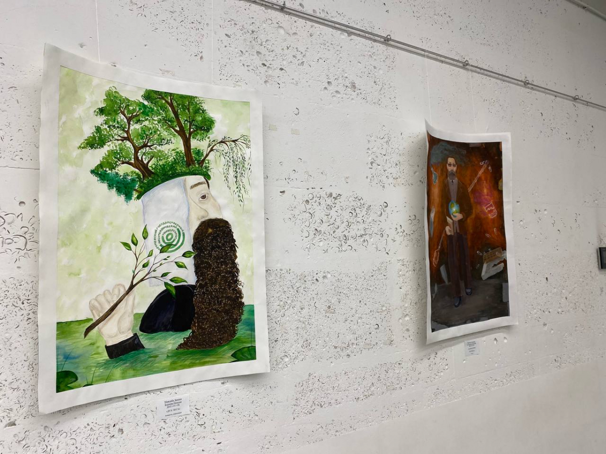 Студенты здесь не только демонстрируют навыки, но и делятся историями своих творческих исканий, показывая нам личные переживания и эмоции. Пространство выставки наполняет атмосферой умиротворения и вдохновения. Зайдя в лекционный зал, ты погружаешься в мир искусства, где на белоснежных стенах оживают картины, созданные с использованием акварели, гуаши, карандаша и даже маркеров.