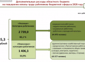 Как видно из скриншота документа провинциального минфина, основная нагрузка для казны будет исходить от «указных» работников, для которых потребуются дополнительные 2,7 млрд рублей.