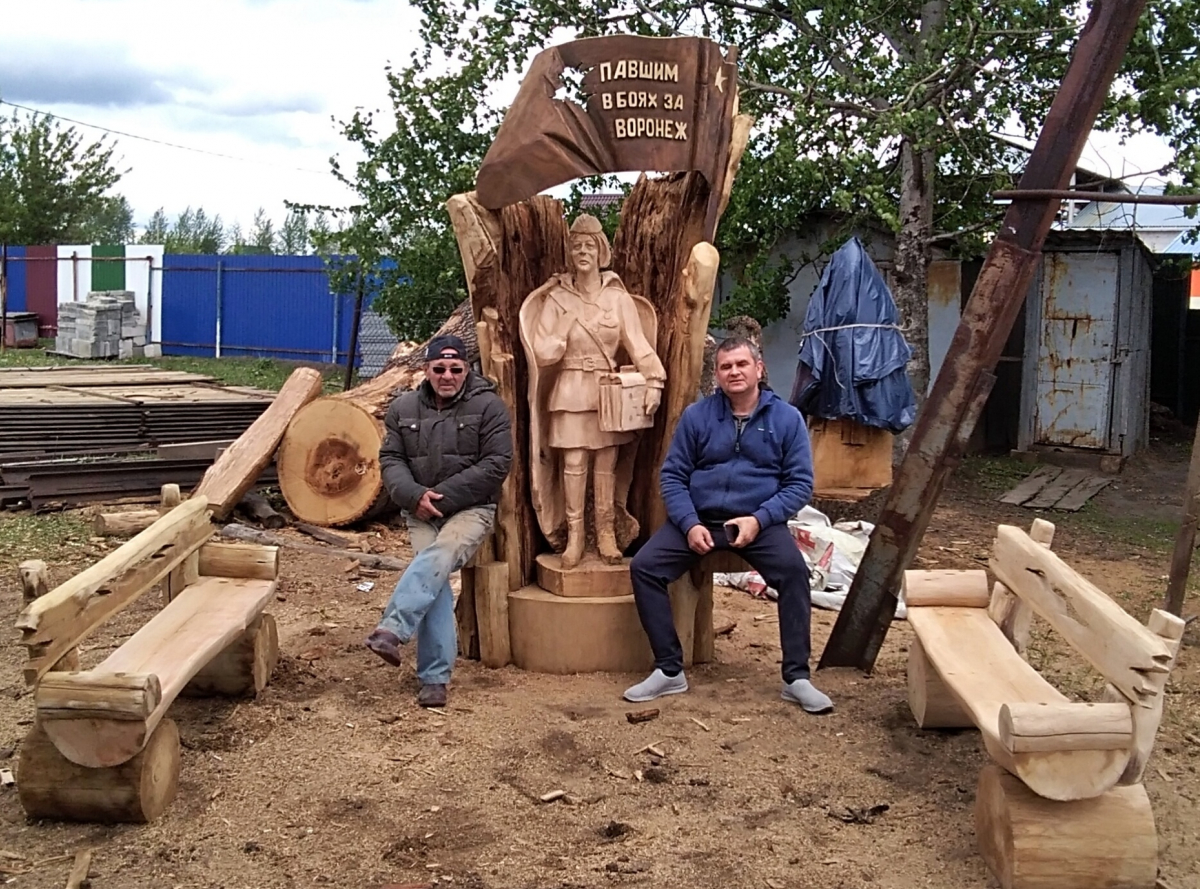 Уникальный памятник вырезали из дерева в честь павших в боях за Воронеж