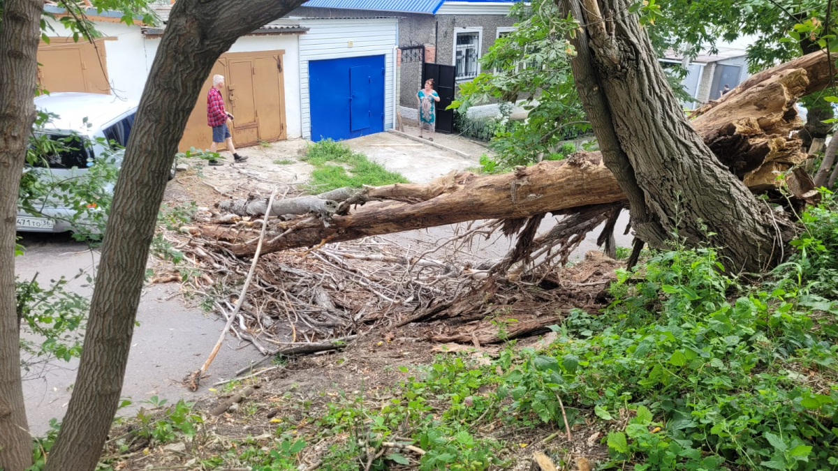 Упавшее сухое дерево повредило машину и вызвало коммунальный хаос в Воронеже